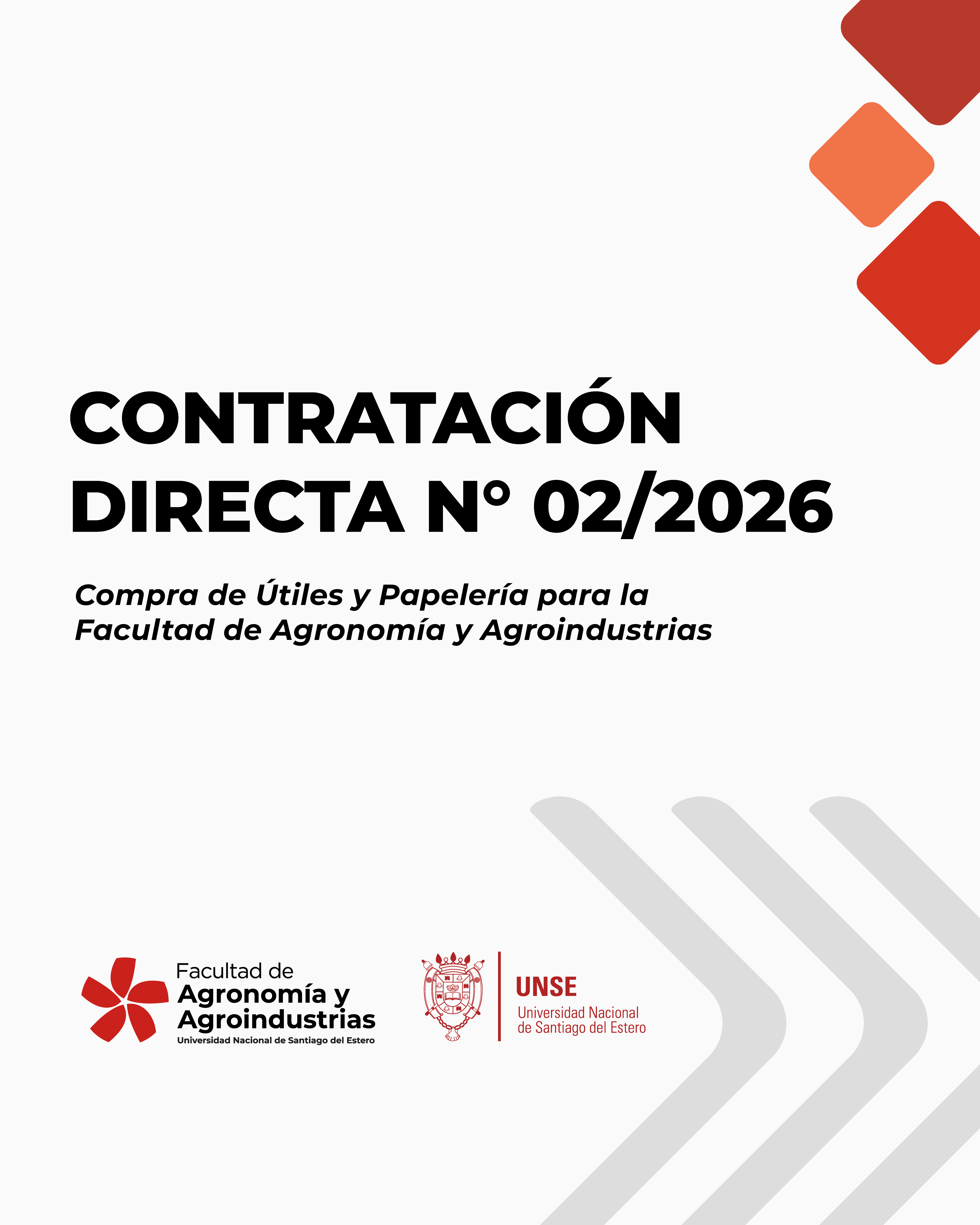 La Secretaría de Administración de la Facultad de Agronomía y Agroindustrias pone a disposición de las personas interesadas la CONTRATACIÓN DIRECTA N° 02/2026 "Compra de Útiles y Papelería para la Facultad de Agronomía y Agroindustrias". Apertura de las ofertas 23/04/2026 – 10:30 hs. Descargar Pliego de Bases y...