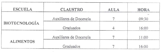 Por Res FAA 004/2026, la Facultad de Agronomía y Agroindustrias convoca a elecciones de representantes de los claustros de Auxiliares de Docencia y de Egresados para integrar los Consejos Asesores de las Escuelas Biotecnología y de Alimentos, a realizarse el 04 de marzo de 2026. en Sede Central de la FAyA, de acuerdo al siguiente detalle: