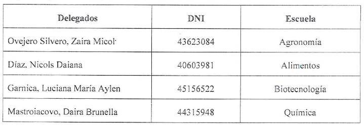 Incorporación de Delegadas de Carreras electas, a los Consejos Asesores de las Escuelas de Agronomía, Alimentos, Biotecnología y Química.