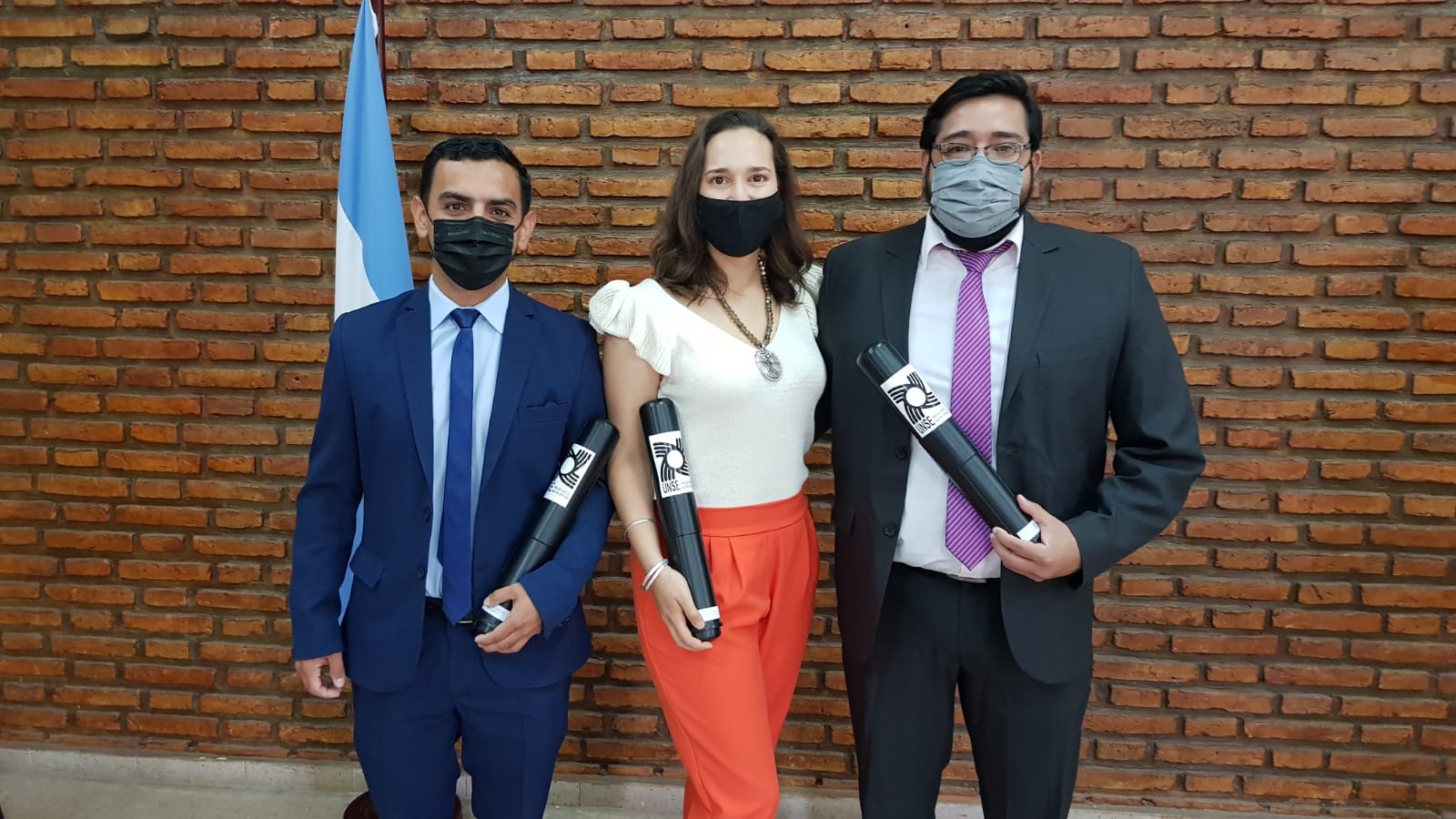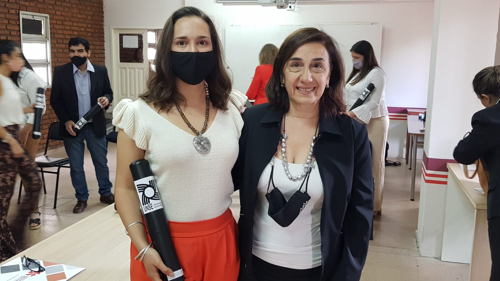 En el aula 7 se hicieron presentes la vicedecana de la FAyA, la Dra. María Judith Ochoa, la Secretaria de Posgrado de la Universidad, la Dra. Gabriela Qüestas, la Secretaria de Posgrado de la FAyA, la Dra. Florencia Frau y la Secretaria de Ciencia y Técnica, Ing. Marcia Rizzo Patrón, como también los egresados; y desde la virtualidad las egresadas que no pudieron estar presentes, como también familiares y seres queridos.